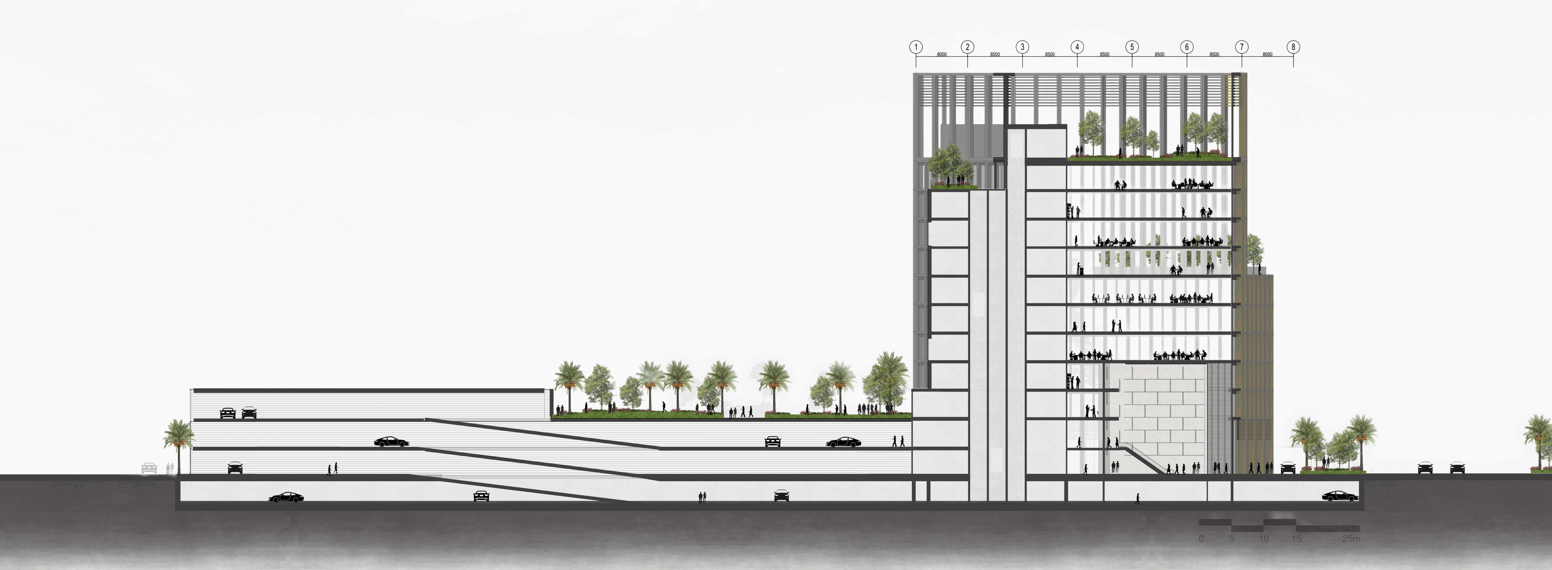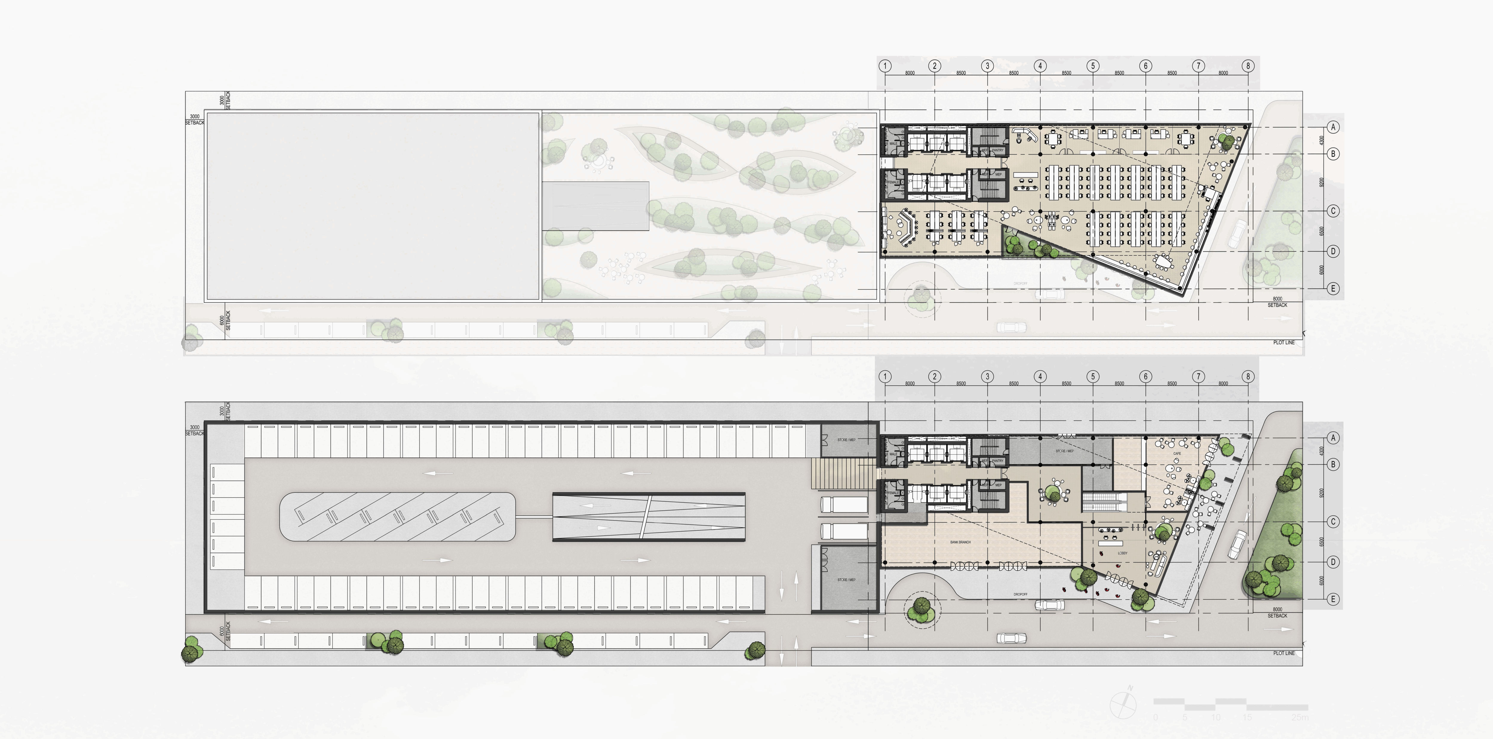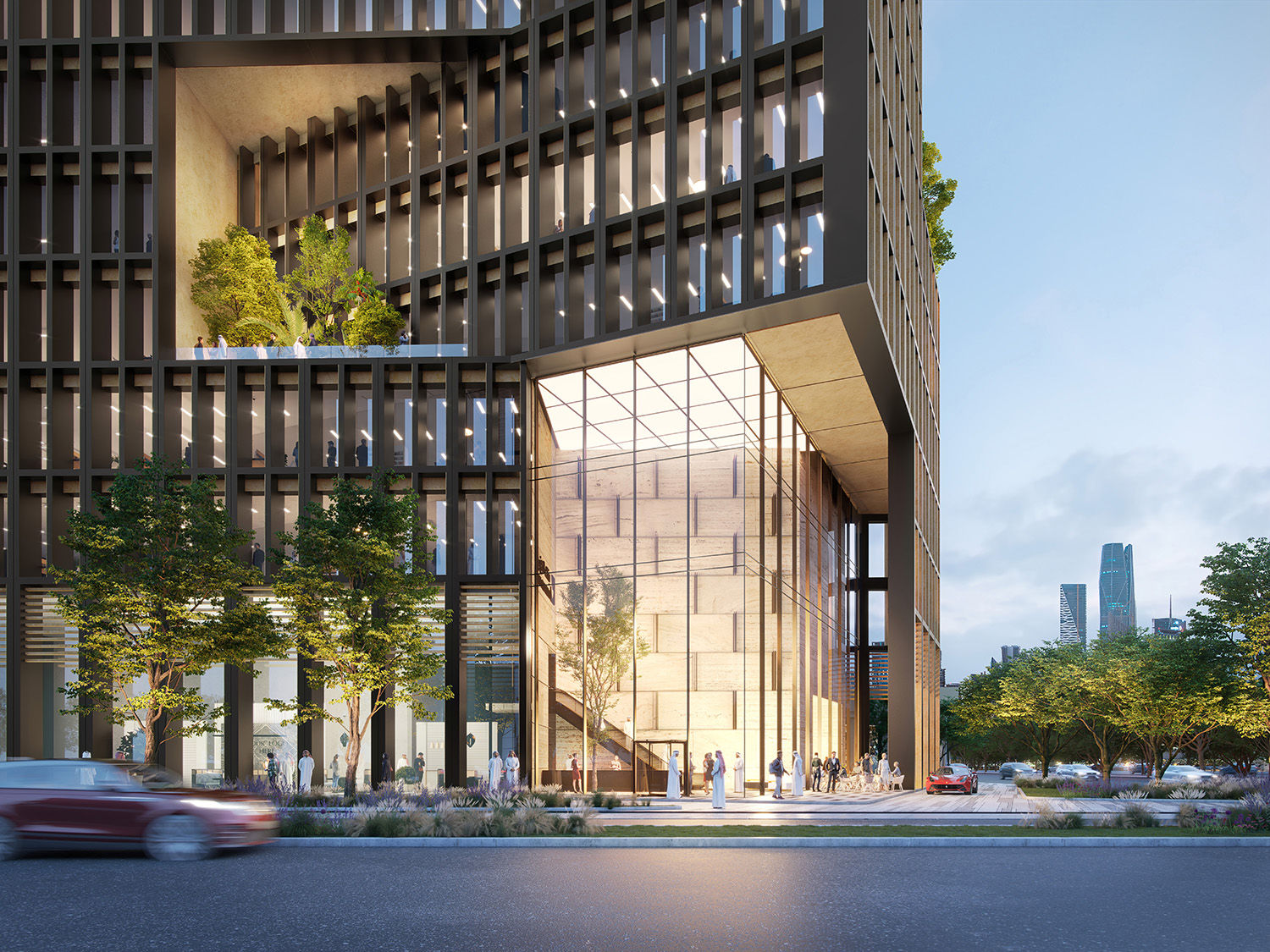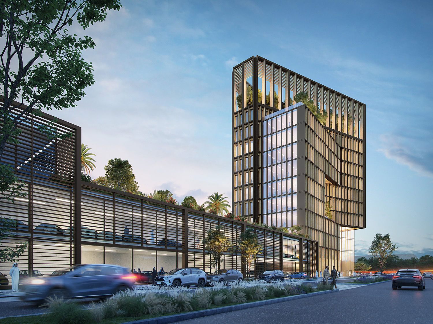 Responding to its site and setbacks, this next-generation workplace tower is designed with visual transparency, urban rhythm, and human experience in mind. The architecture celebrates arrival with a feature lobby and breaks away from traditional massing through a series of articulated forms and open voids—creating layered “see-through” moments across the facade. Lushly planted roof gardens serve as breakout areas for all employees, offering elevated spaces for rest, reflection, and collaboration. With a clean, high-tech language and wellness-oriented design, the tower reimagines the workplace as a vertically connected environment where nature, innovation, and productivity thrive together.