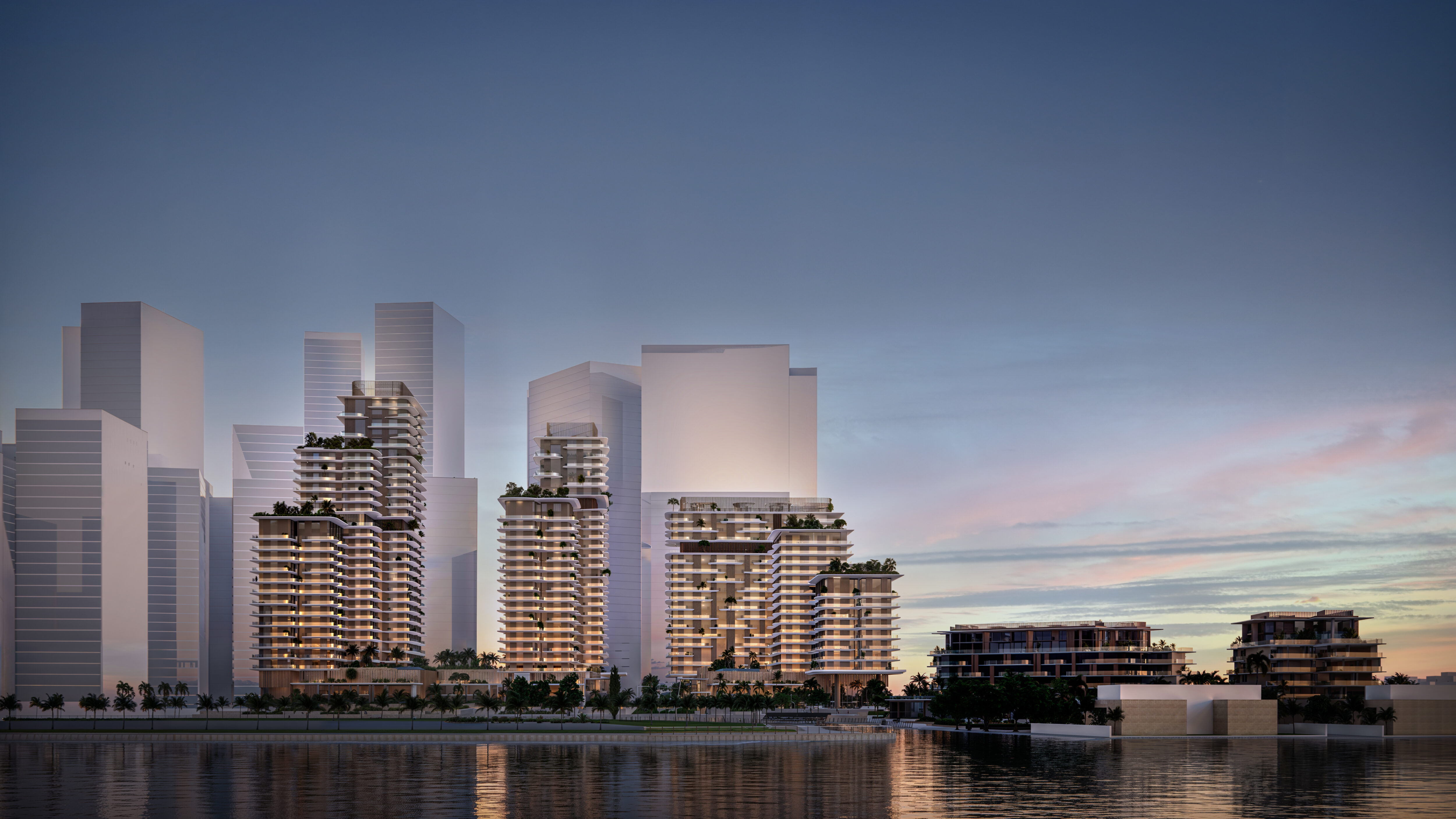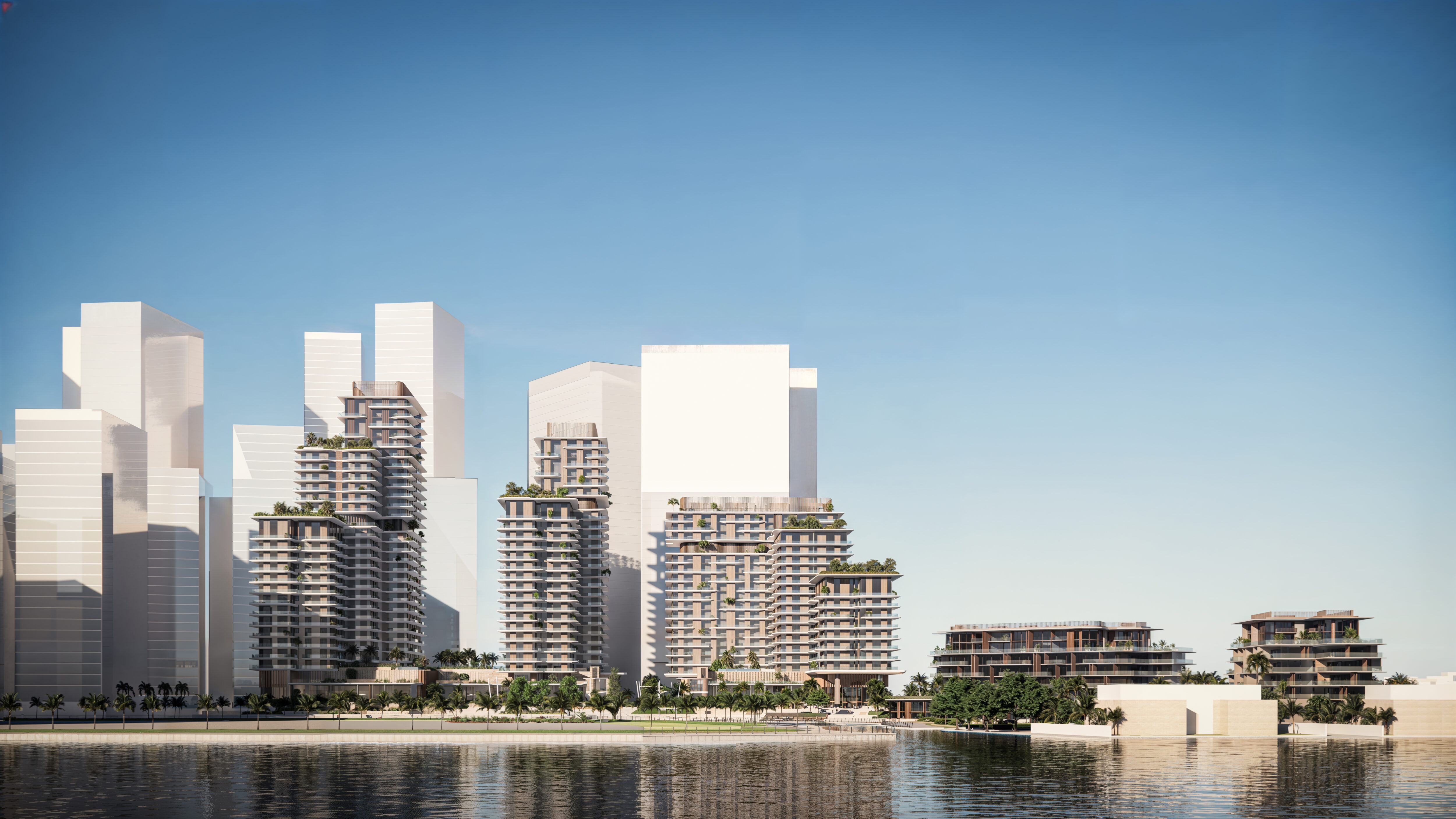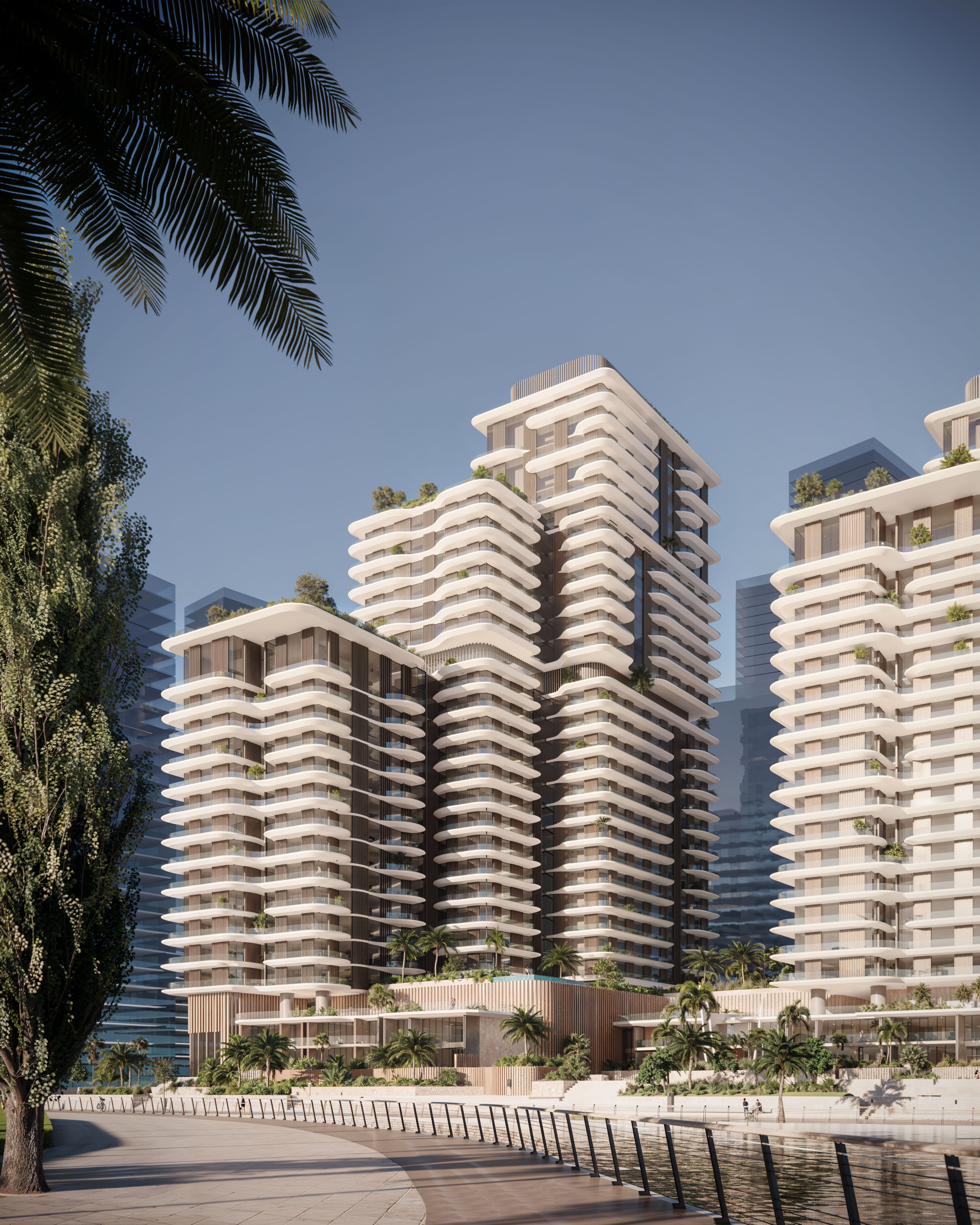 Set along the shimmering edge of Reem Island’s canal, Najmat Canal District is a sculpted collection of luxury residential towers defined by soft terraces, natural textures, and lush vertical gardens. The architecture captures sweeping sunset views over the Abu Dhabi Corniche and the quiet mangrove parklands beyond, while a curated mix of retail and leisure spaces at the ground plane weaves urban vibrancy into the coastal calm. Designed for elevated, high-end living, the development brings together waterfront serenity and city energy in one of Abu Dhabi’s most sought-after districts.