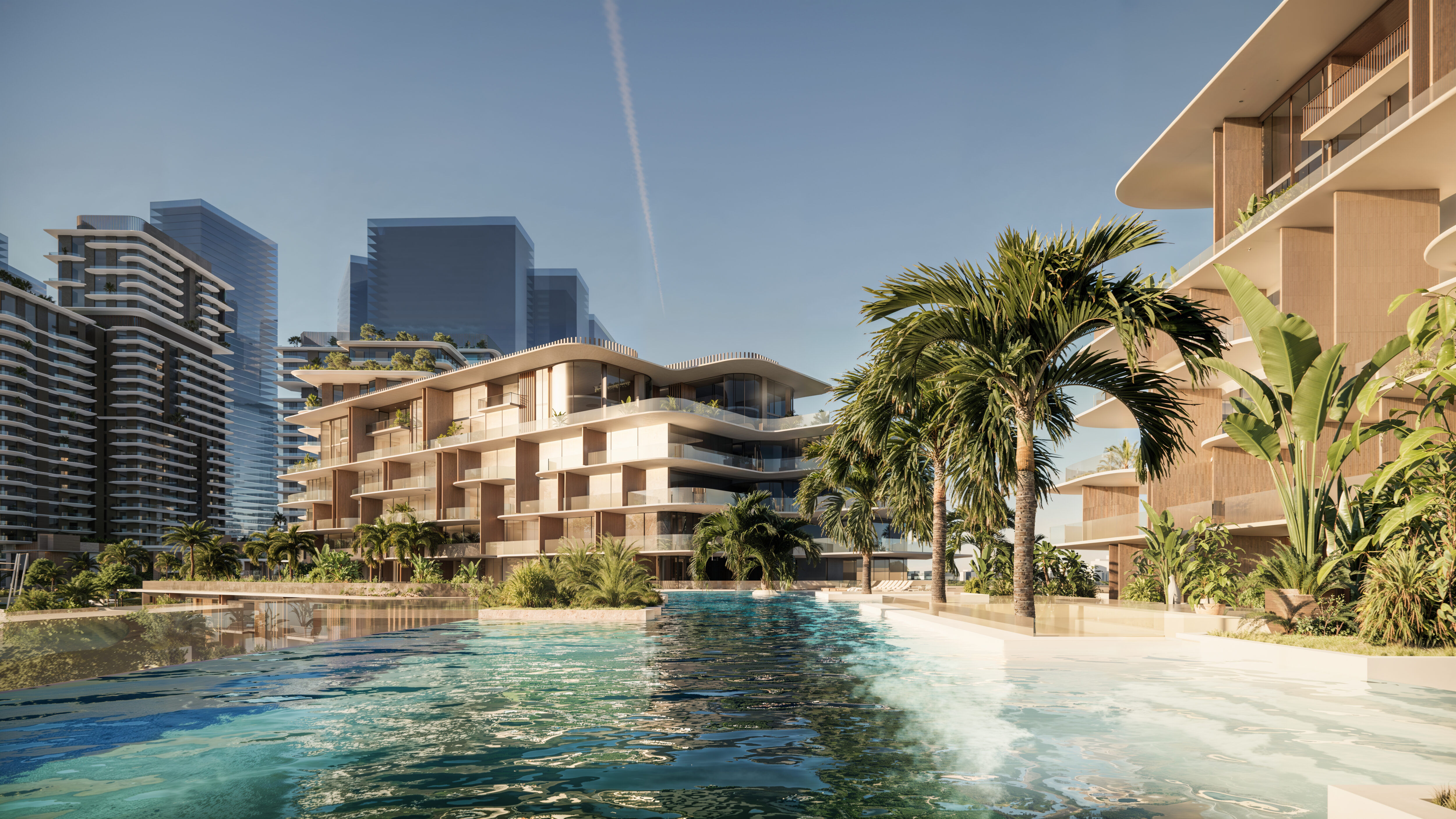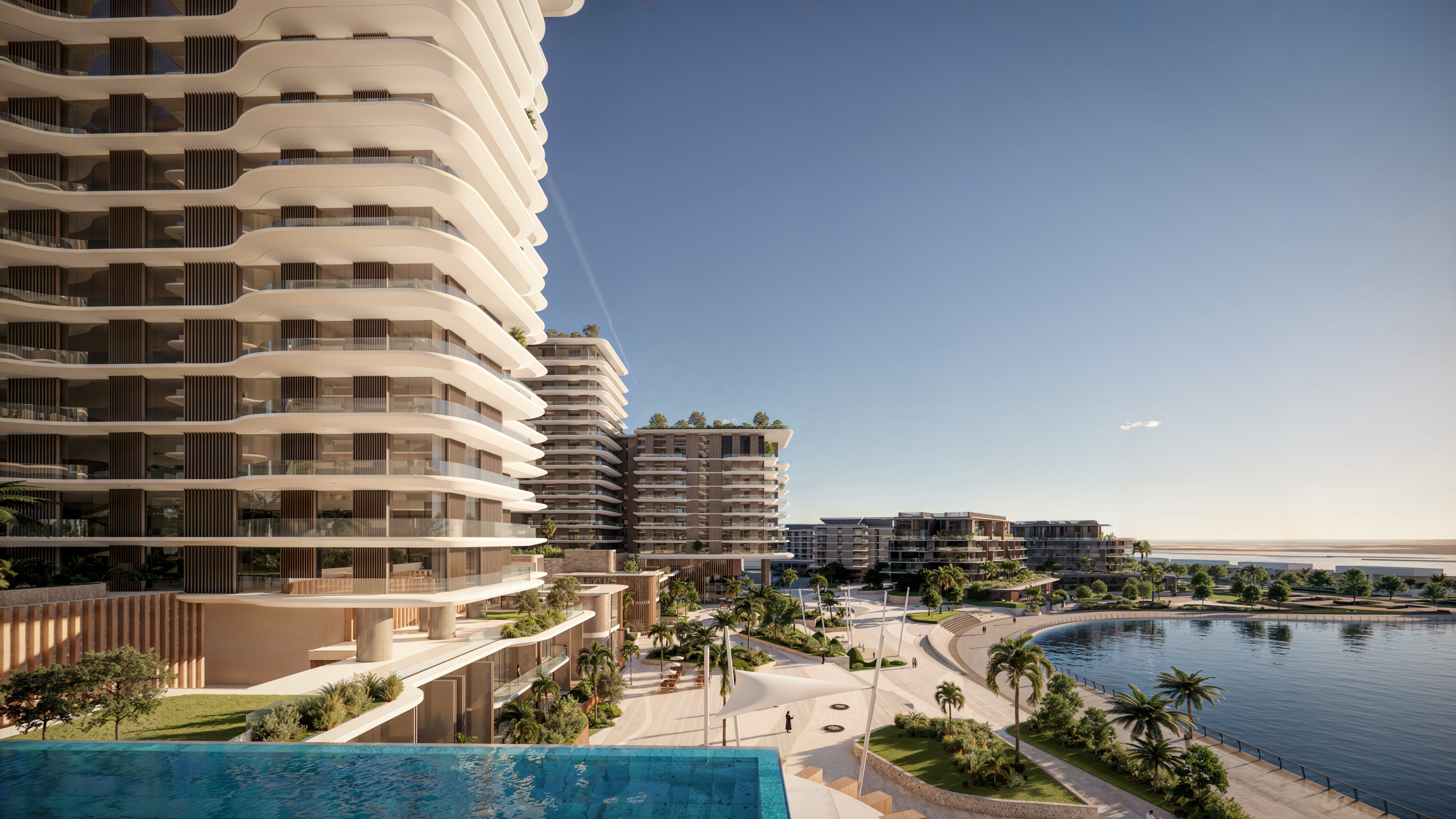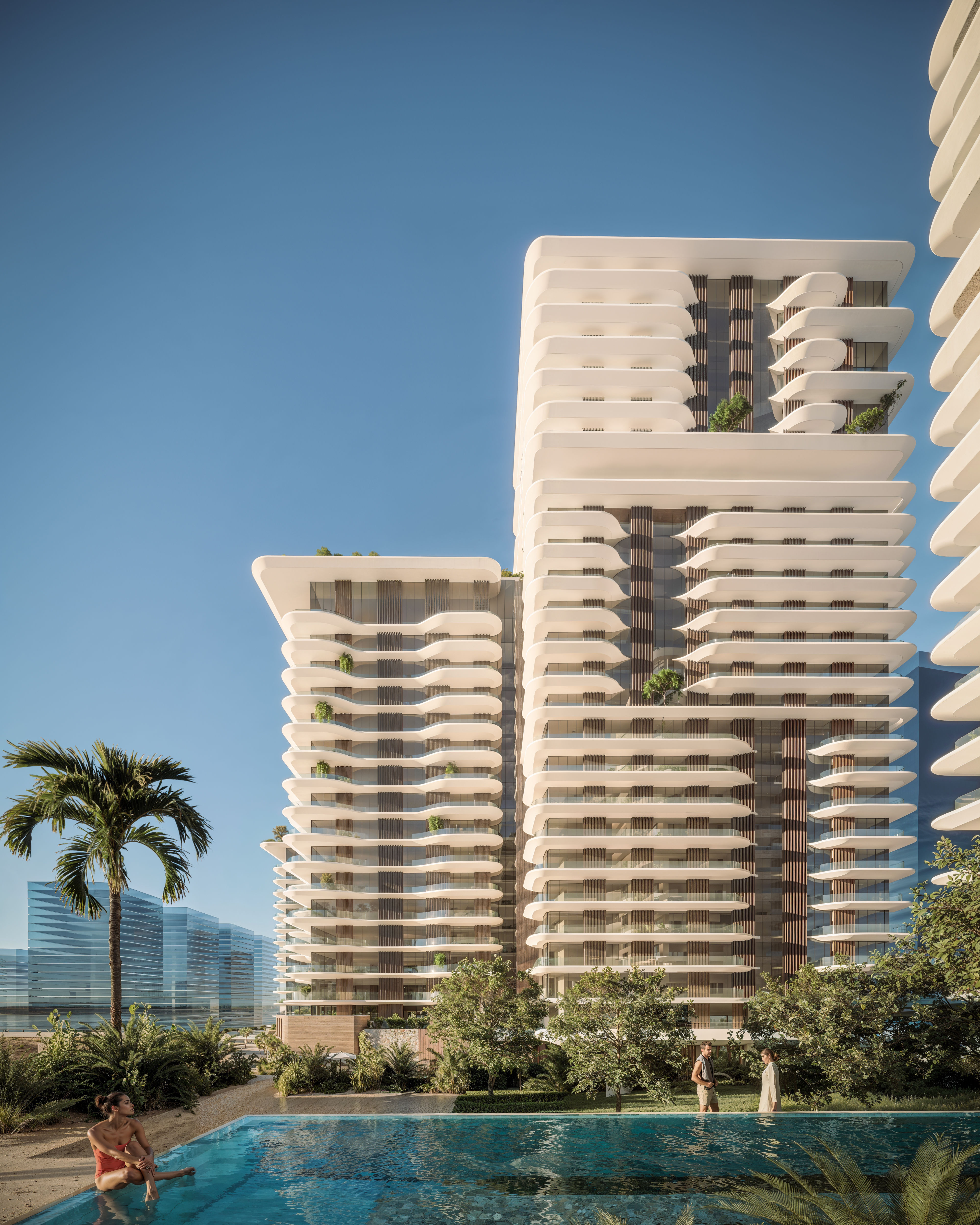 Set along the shimmering edge of Reem Island’s canal, Najmat Canal District is a sculpted collection of luxury residential towers defined by soft terraces, natural textures, and lush vertical gardens. The architecture captures sweeping sunset views over the Abu Dhabi Corniche and the quiet mangrove parklands beyond, while a curated mix of retail and leisure spaces at the ground plane weaves urban vibrancy into the coastal calm. Designed for elevated, high-end living, the development brings together waterfront serenity and city energy in one of Abu Dhabi’s most sought-after districts.