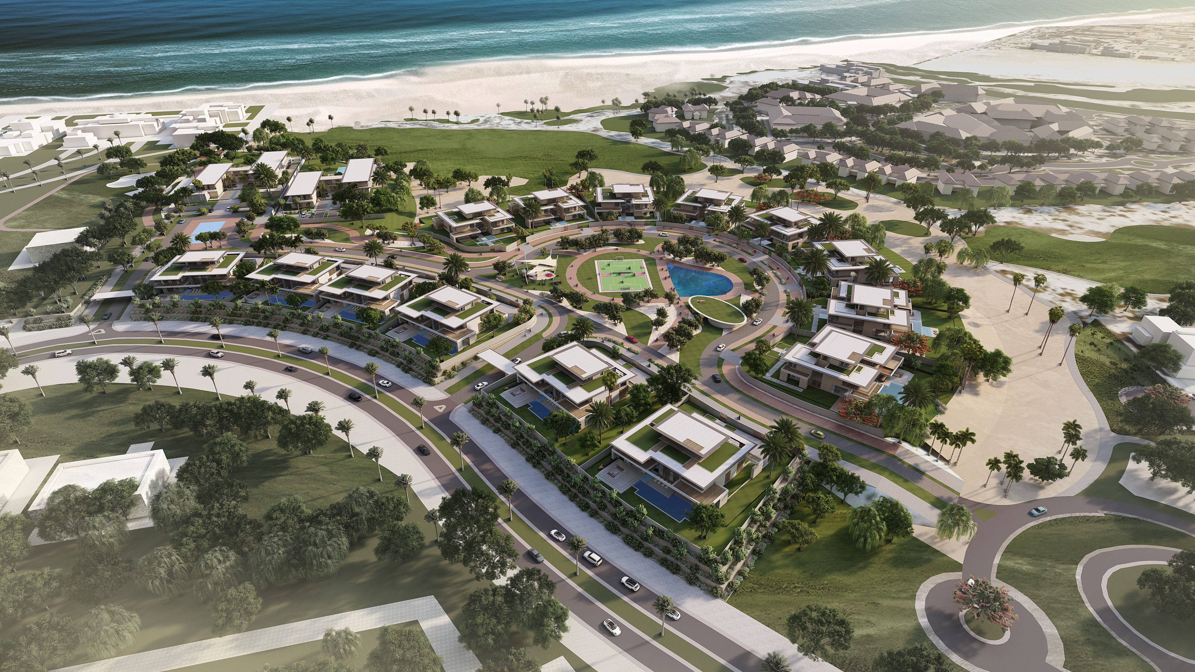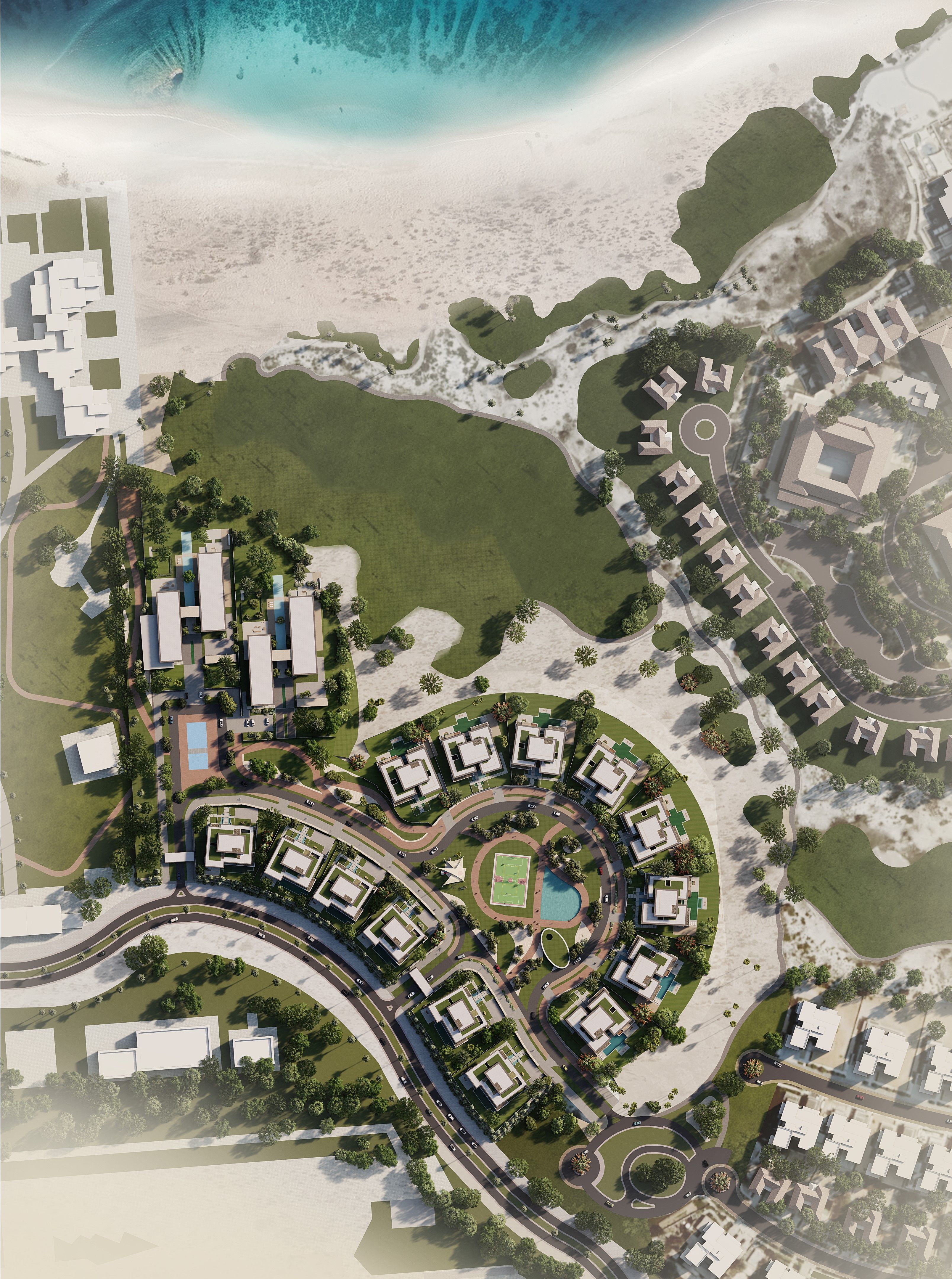 Saadiyat Beach Residences is a refined coastal enclave of 5- and 6-bedroom villas, designed to blend seamlessly with the natural topography of one of Saadiyat Island’s most exclusive locations. With uninterrupted views of the sea, golf course, and surrounding landscape, each villa is shaped by a language of smooth edges, double-height courtyards, and layered terraces that invite light and breeze into every space. Grand arrival sequences, private beach access, and lush private pools enhance a lifestyle of effortless elegance. Framed by nature and grounded in calm materiality, this development offers a timeless interpretation of luxury living—quiet, expansive, and intimately connected to the land and sea.